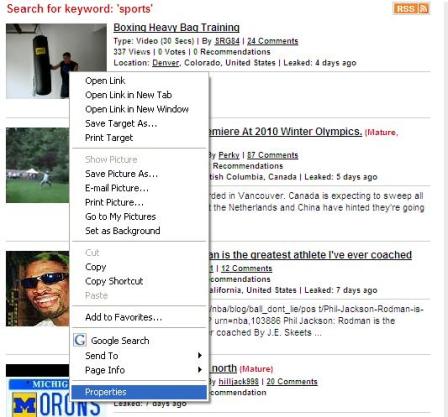 | Les résultats de la recherche apparaissent sous forme de vignettes avec des descriptions textuelles. Lorsque vous avez trouvé la vidéo souhaité, placez le pointeur de votre souris sur la vignette de l'image et cliquez avec le bouton droit de la souris. Un menu apparaît sur l'écran et sélectionnez Propriétés. |